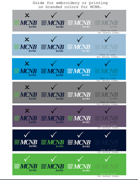 MCNB Bank logo options. Below are examples of the embroidery options.